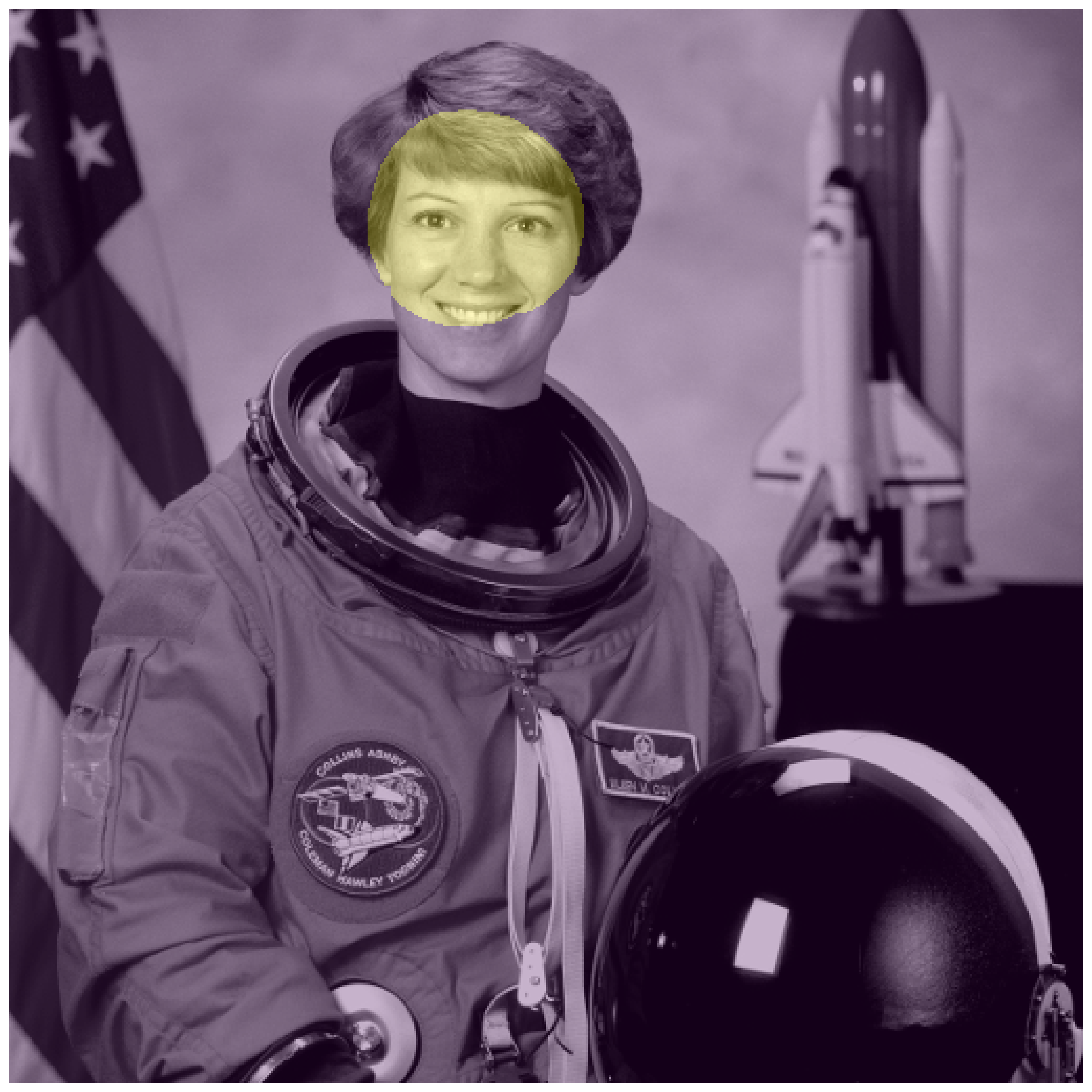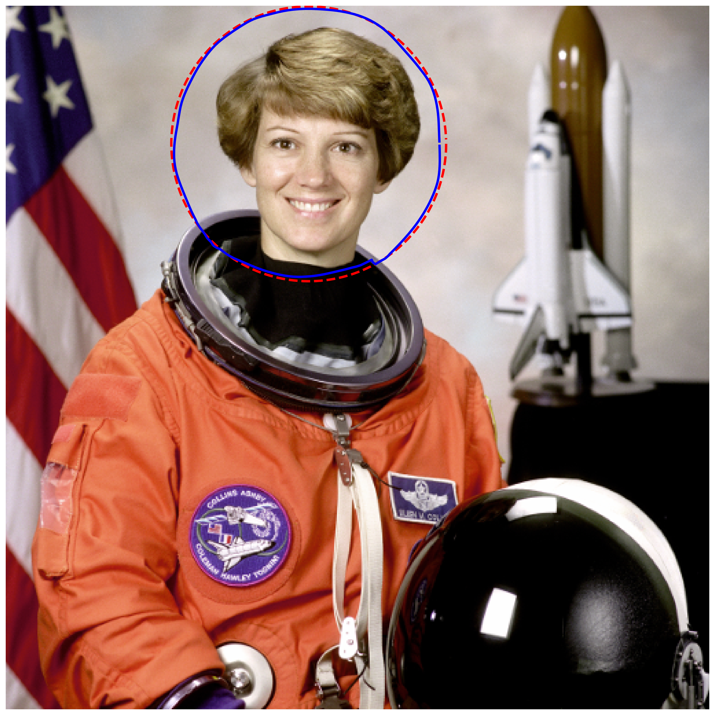 We must have a set of initial parameters to ‘seed’ our segmentation this. Let’s draw a circle around the astronaut’s head to initialize the snake.
