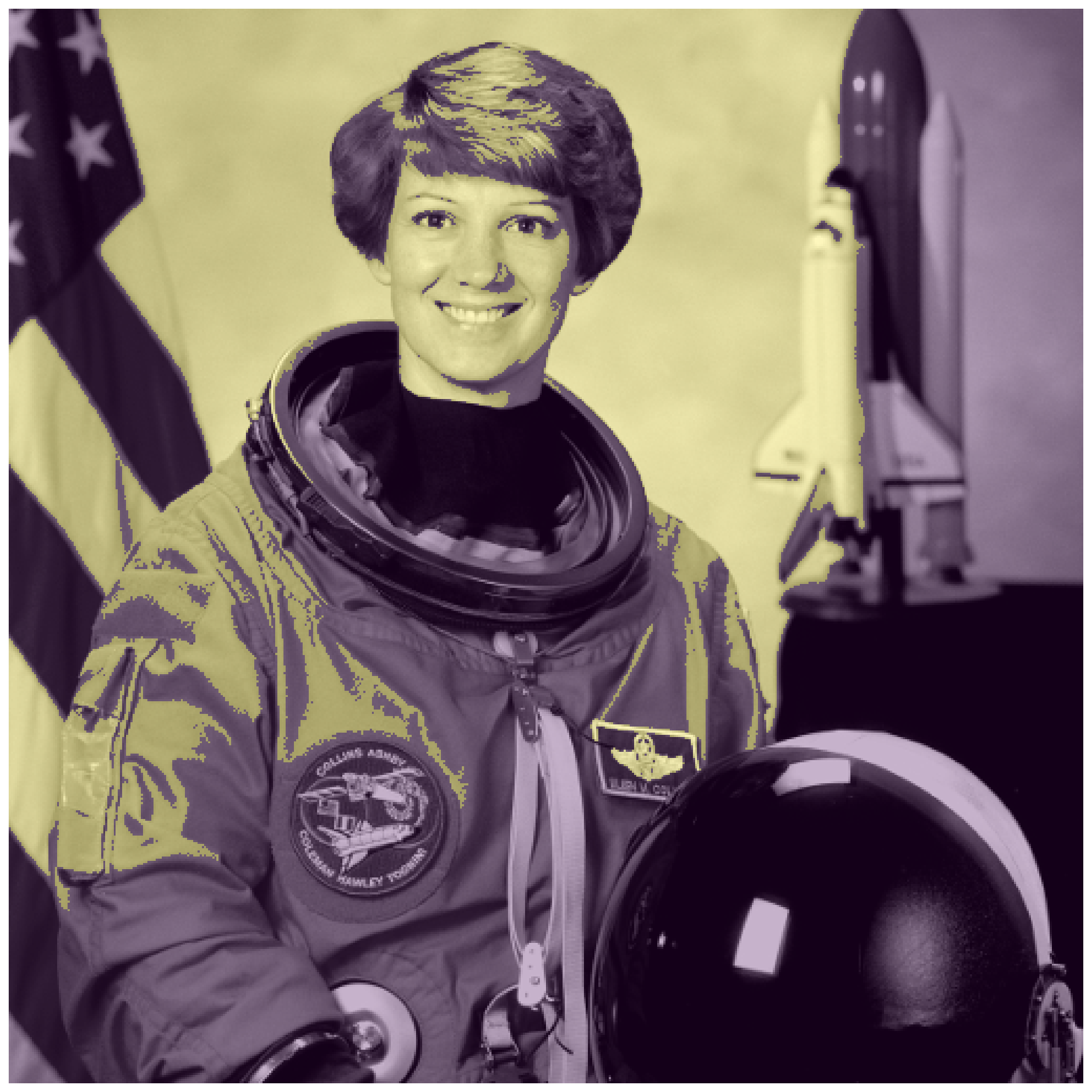 For this section, we will use the astronaut image and attempt to segment Eileen Collins’ head using supervised segmentation.